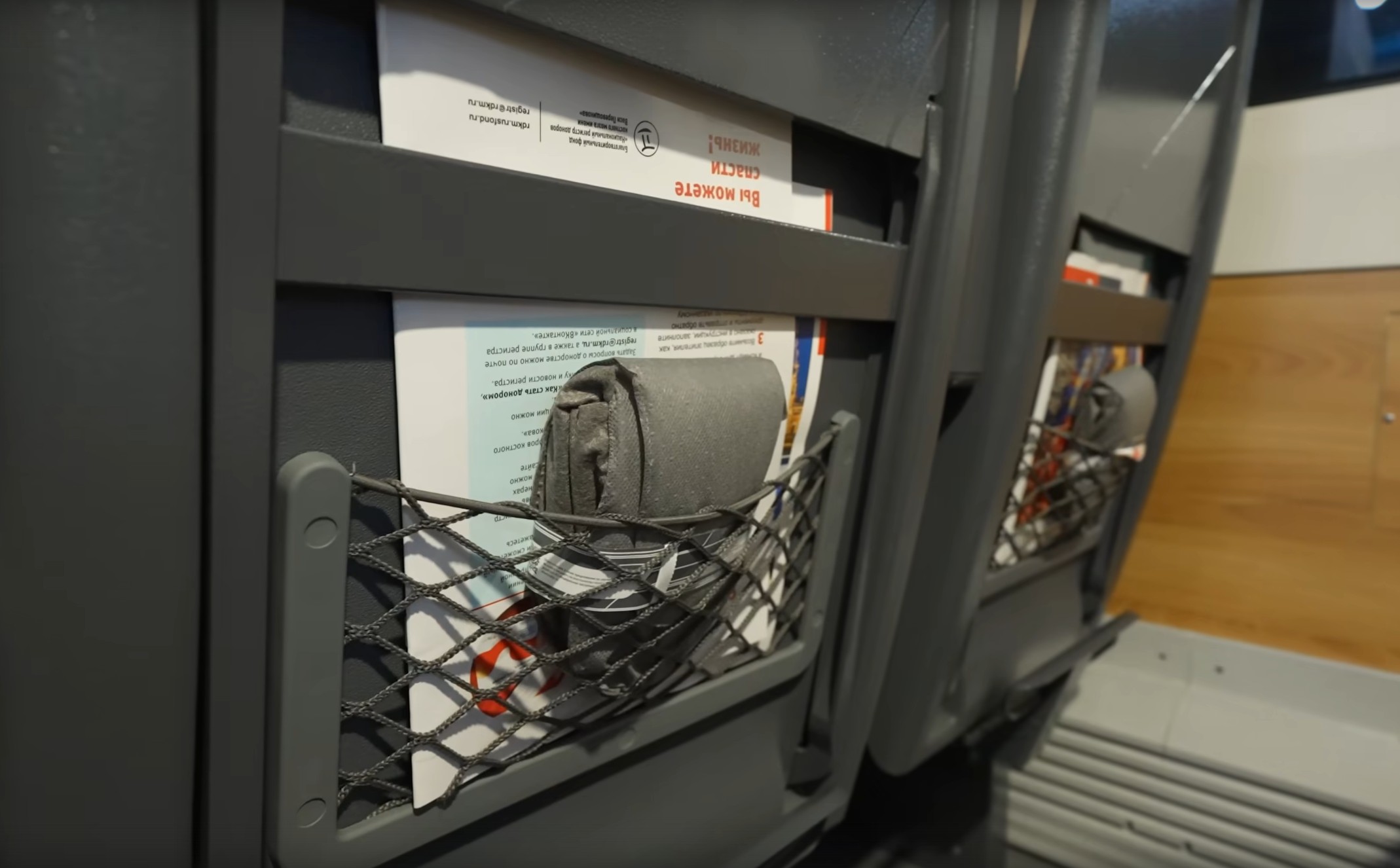 Сидячие места бизнес-класса оборудованы откидными сиденьями и удобными столиками, которые легко превращаются в рабочую зону.